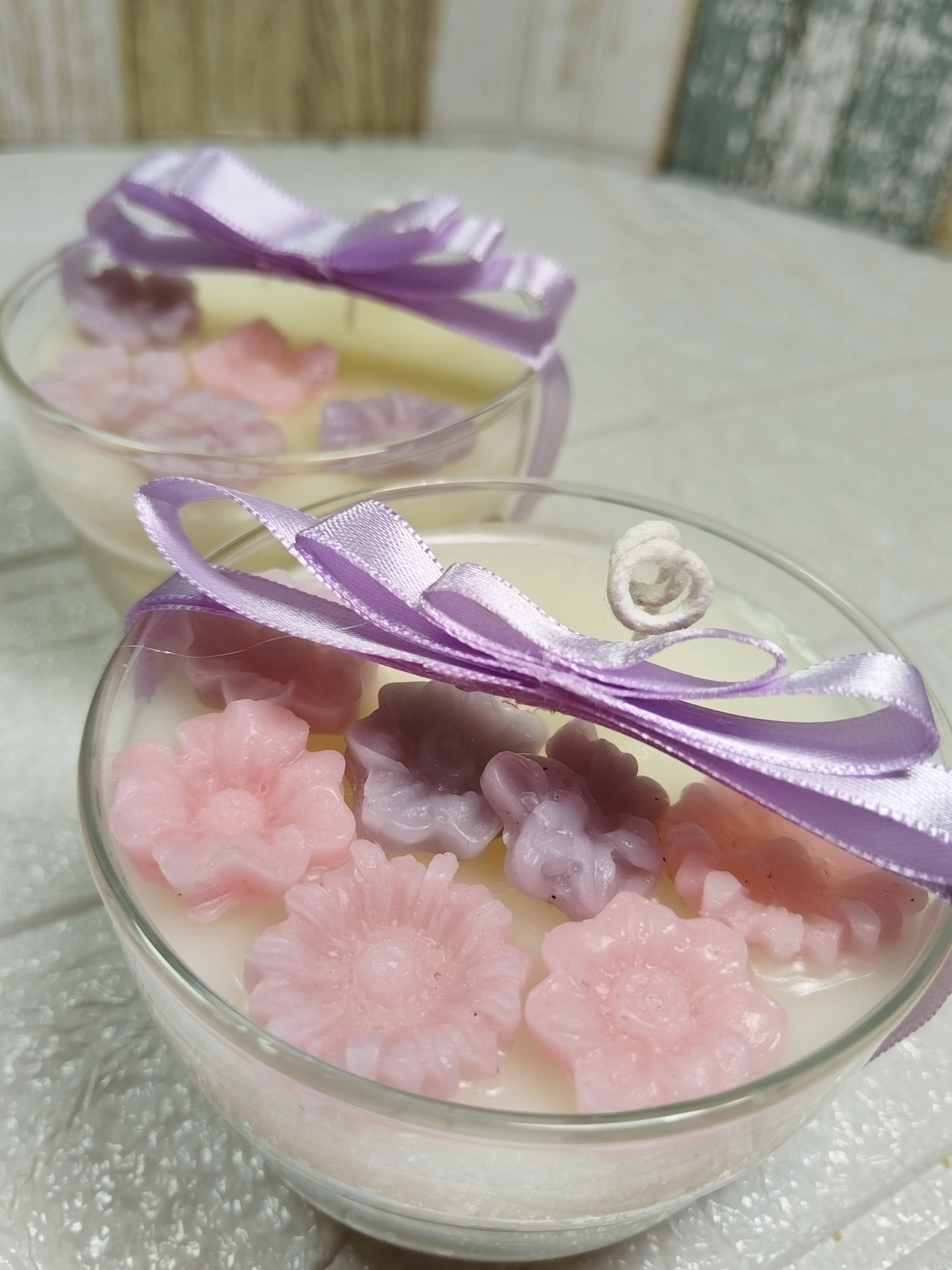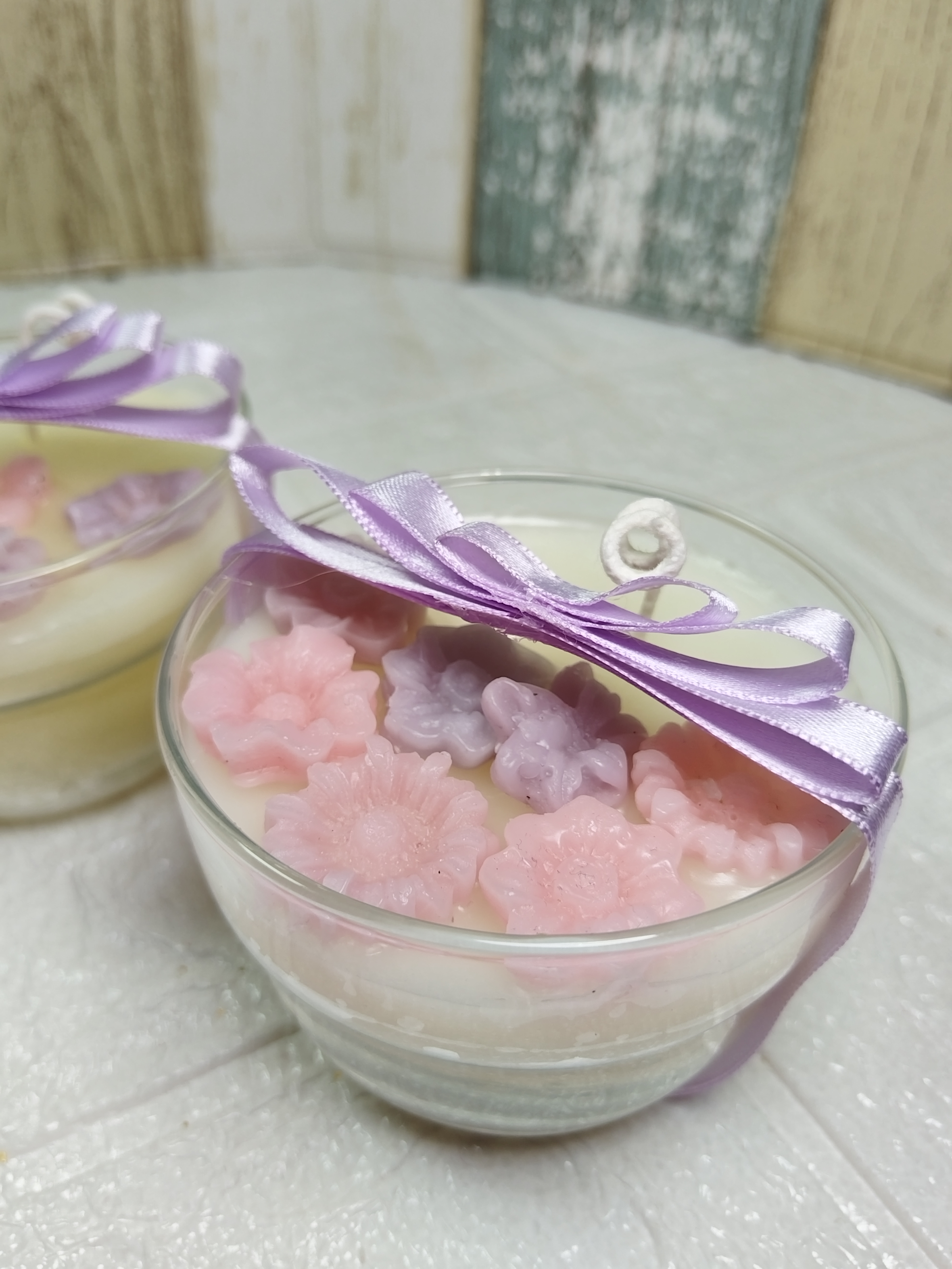 2'li Cam Kavanozlu Mini Çiçekli Dekoratif Butik Mum
