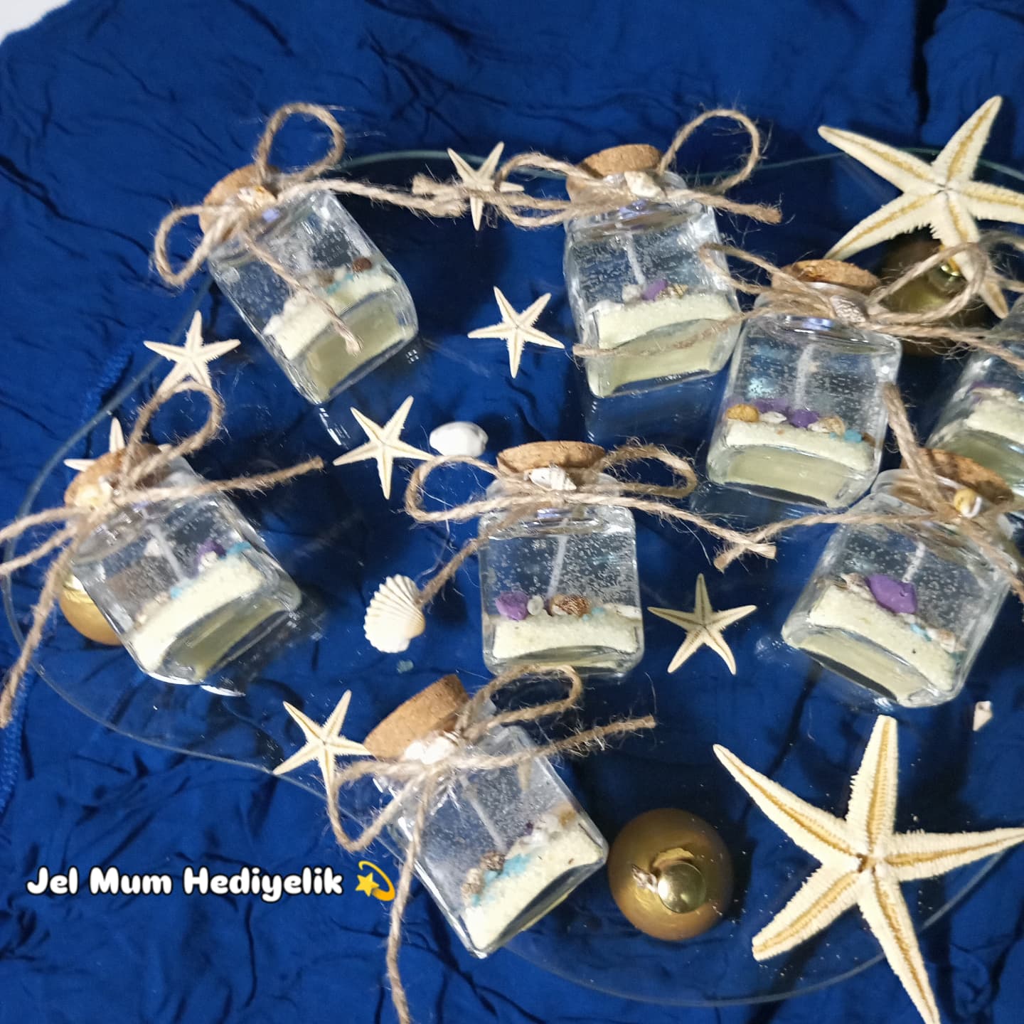 Deniz Konseptli Kavanoz Jel Mum, zarif tasarımı ve fonksiyonelliği ile özel anlarınızı taçlandıracak bir ürün. Düğün, nişan veya diğer organizasyonlarınızda misafirlerinizi etkilemek ve güzel bir atmosfer yaratmak için bu eşsiz mumları tercih edebilirsiniz. Sevdiklerinize sunacağınız mükemmel bir hediye seçeneği olarak da dikkat çekiyor. Şimdi sipariş verin, özel anlarınızı unutulmaz kılın!