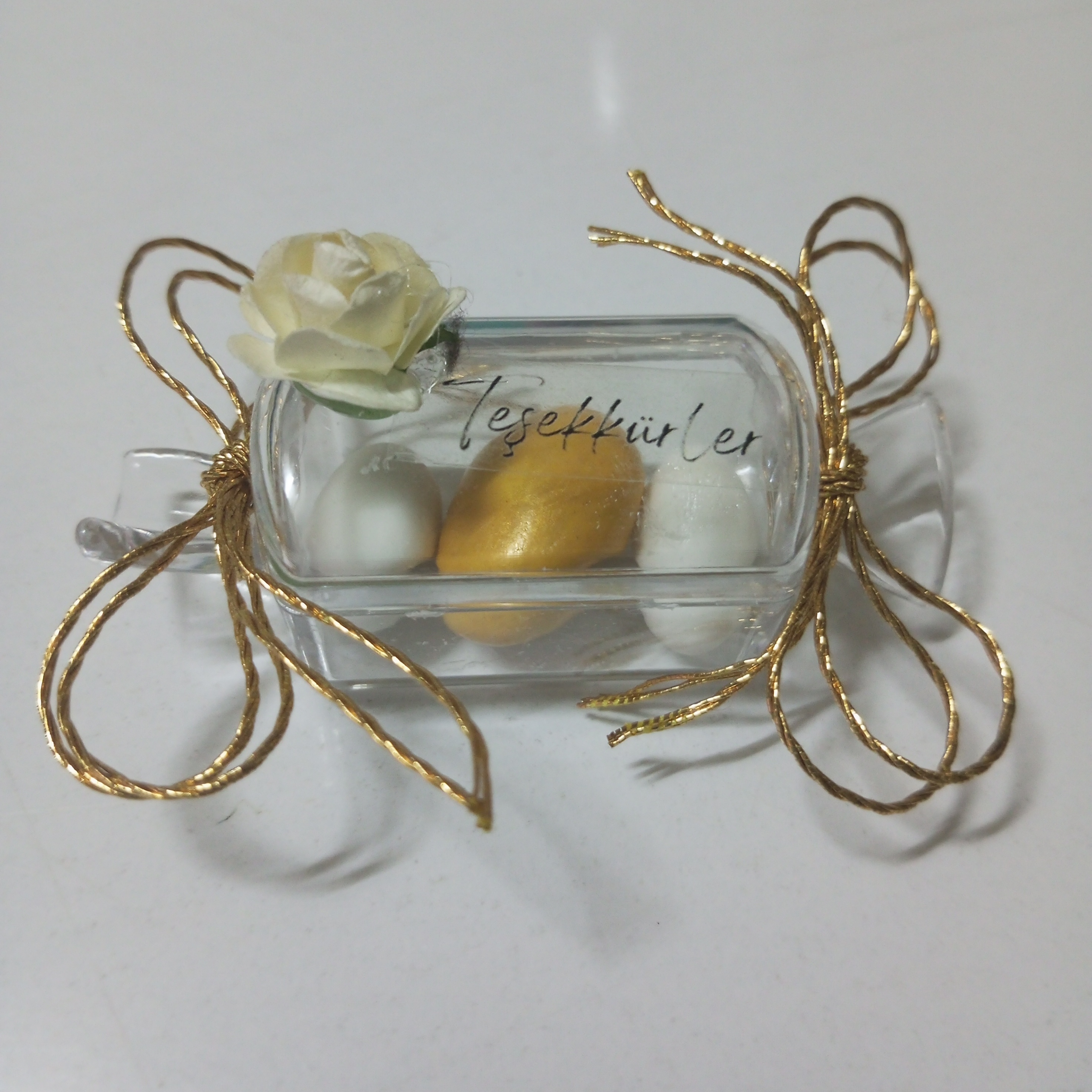 Hediyeliklerimiz, geleneksel badem şekeri geleneğini modern bir dokunuşla yeniden yorumlamakta. Düğün, nişan, nikah veya kına gecenizde istenirse içine kına da koyularak misafirlerinizi bu özel ikramlarla onurlandırmak, onlara verdiğiniz önemi bir kez daha gösterir. Her bir objenin içinde yer alan verimli ve lezzetli badem şekerleri, misafirlerinize sunduğunuz bu hediyeliklerin hem gözünü hem de damak zevkini şenlendirecek.