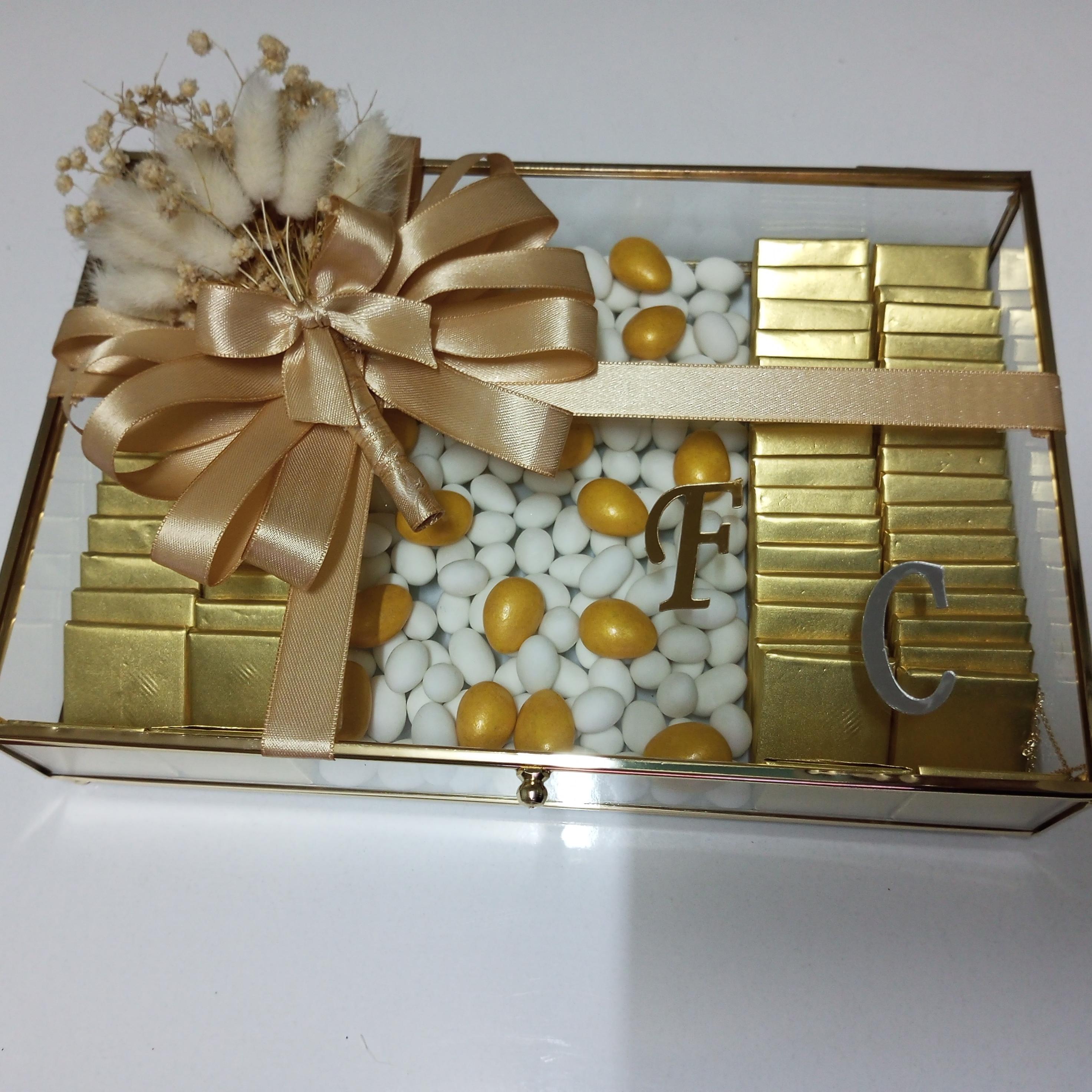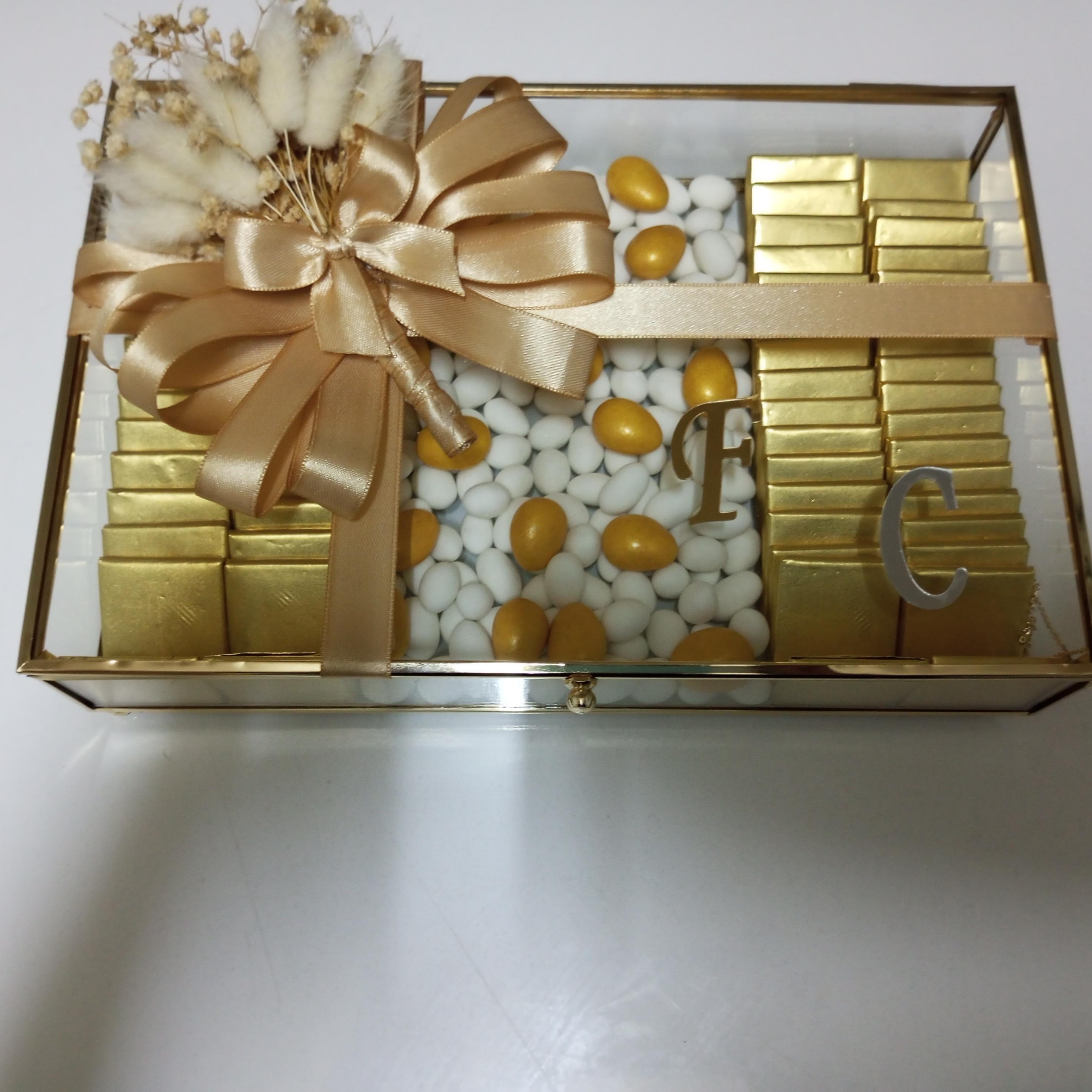 Düğün, nişan, söz veya özel davetlerde misafirlerinize sunabileceğiniz şık ve lezzetli bir hediye arıyorsanız, Gold Renkli Cam Kapaklı İsteme Çikolatası tam size göre. Bu özel çikolata kutusu, hem görselliği hem de içeriği ile dikkatleri üzerine çekiyor.