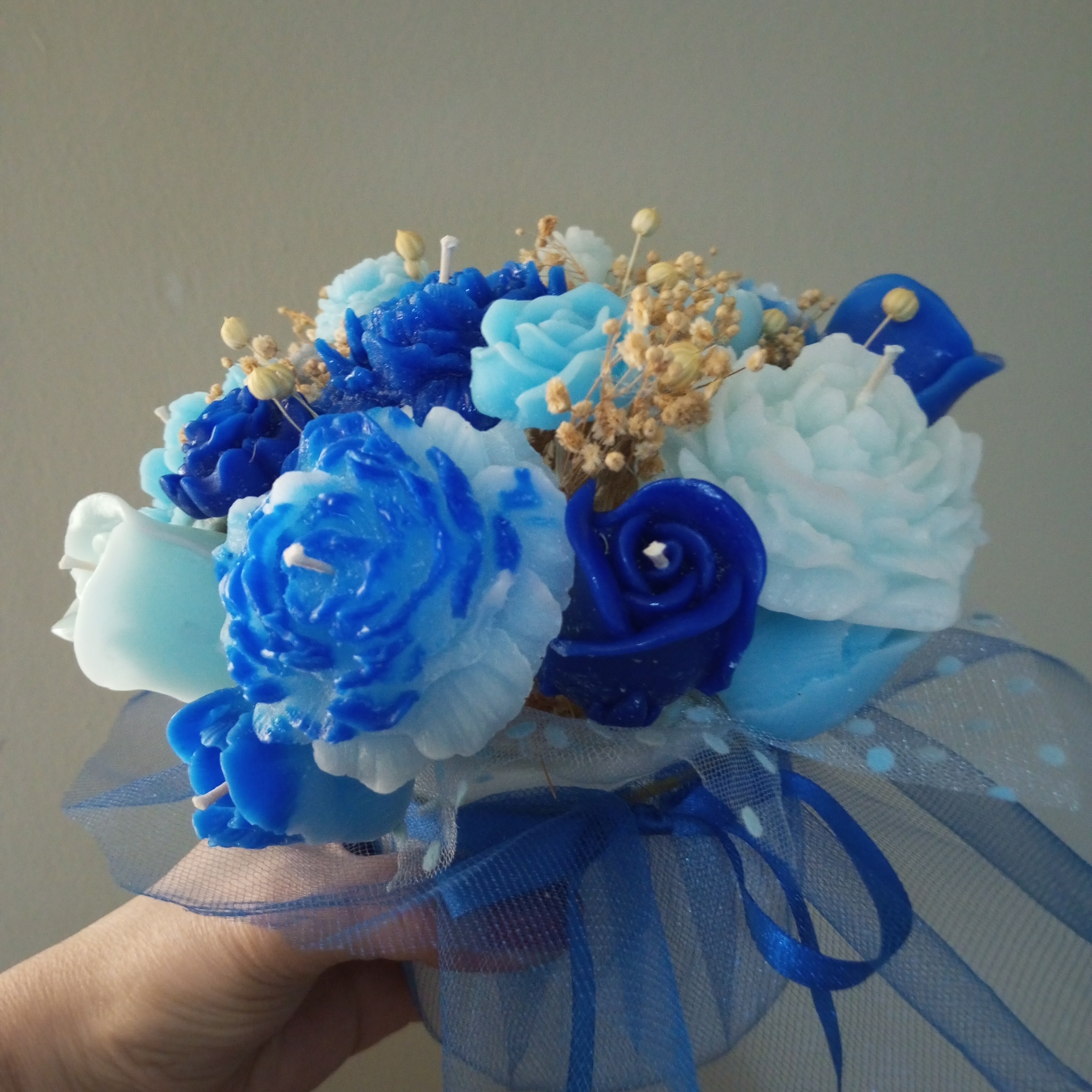 Mavi Şakayık Gül Mum Çiçek Buketi, estetik ve fonksiyonelliği bir araya getirerek mekanlarınıza zarif bir dokunuş katıyor. Hem kendiniz hem de sevdikleriniz için harika bir hediye alternatifi oluşturuyor. Bu eşsiz tasarıma sahip buket ile hem görsel hem de duygusal bir ziyafet sunmak için hemen sipariş verin!