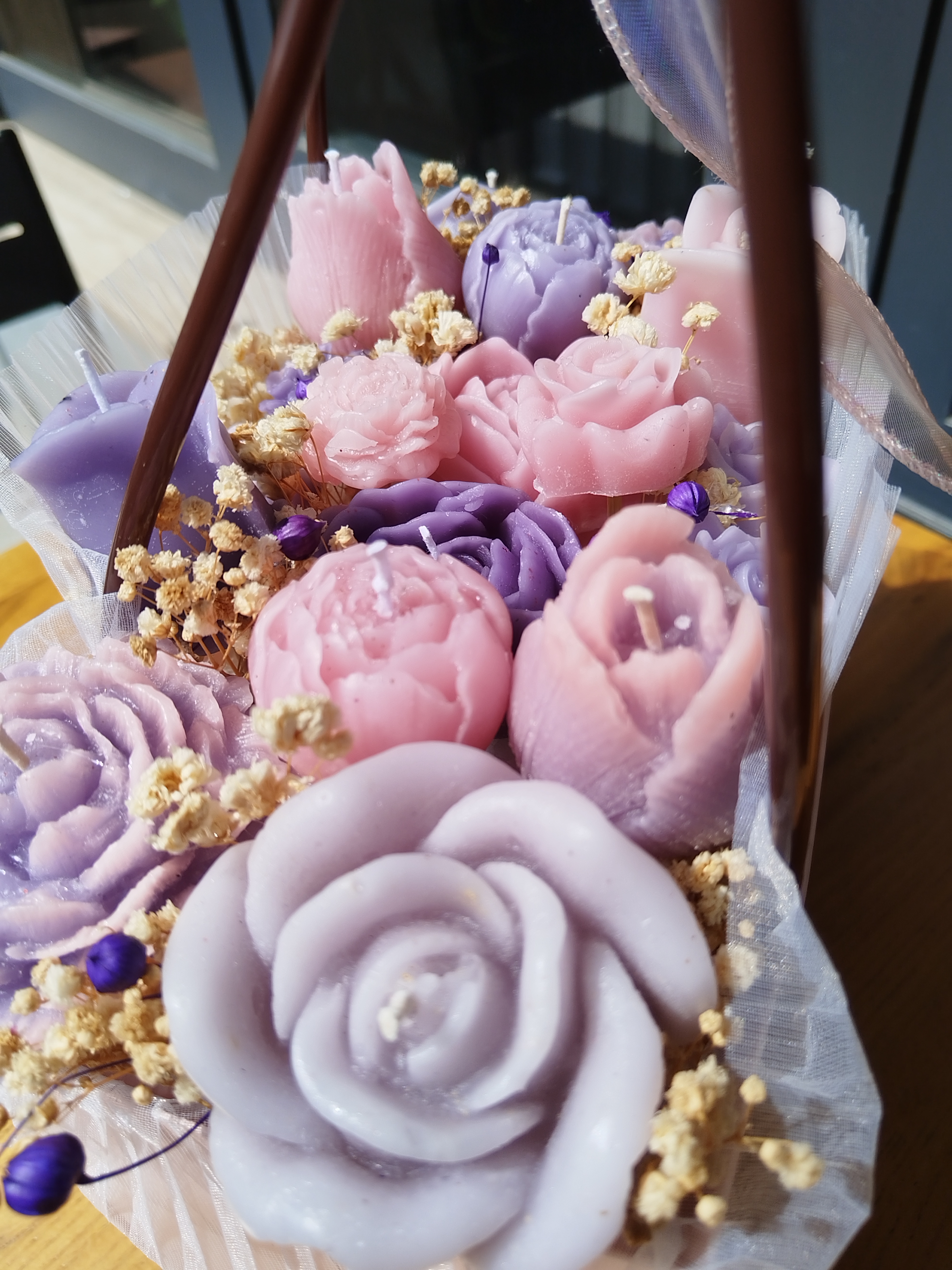 Buketimizin pembe ve mor tonlarındaki mumları, hem zarif hem de modern bir görünüm sunarak, her mekanı aydınlatacak şıklıkta tasarlanmıştır. Pembe ve mor renklerinin bir araya gelmesi, duygusal bir sıcaklık ve romantik bir atmosfer yaratmaktadır. Bu tasarım, özellikle kadınların beğeniyle karşılayabileceği bir estetiğe sahiptir ve her yaştan insana hitap edebilme özelliğine sahiptir.