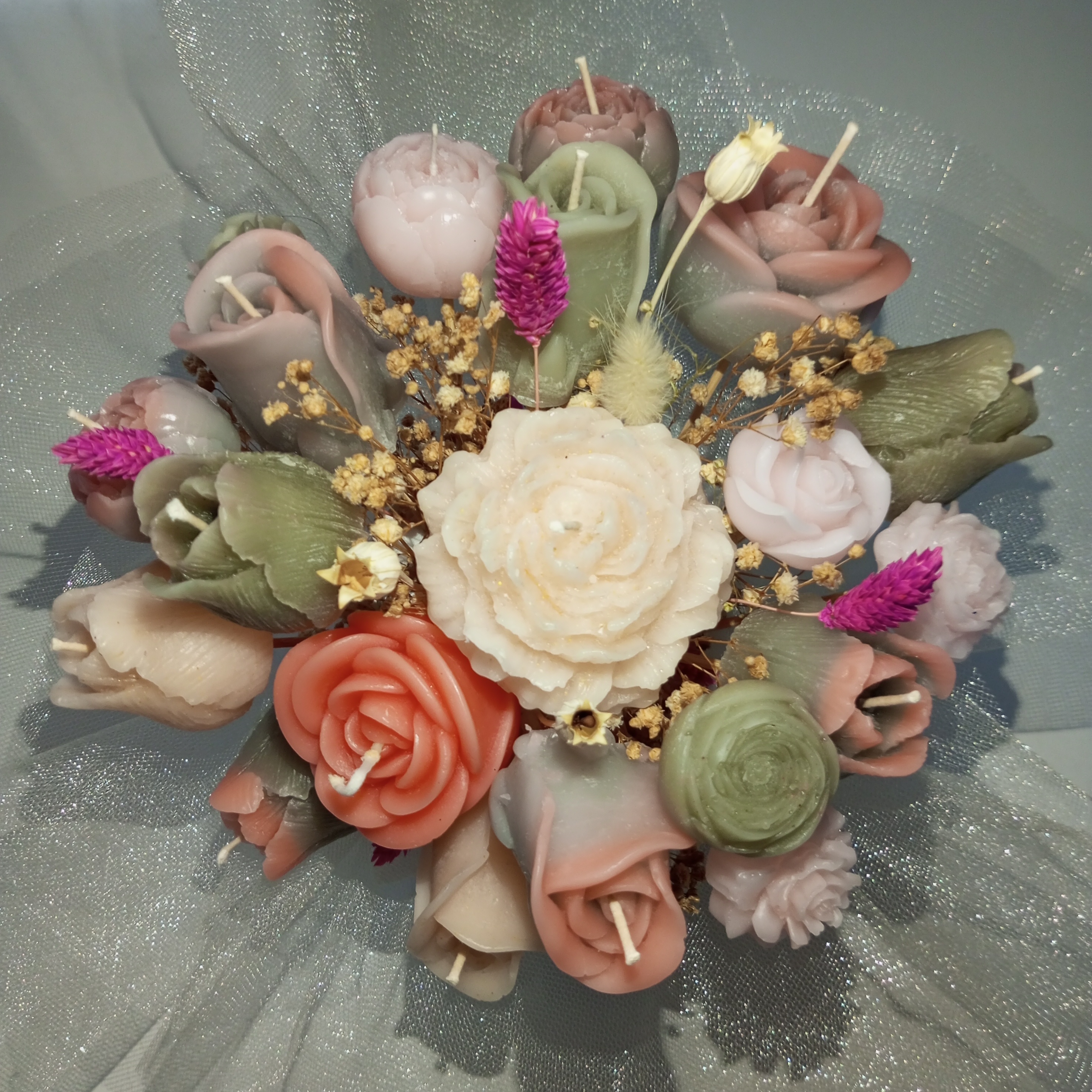 Pembe-Gri Şakayık Gül Mum Buket Hediyelik