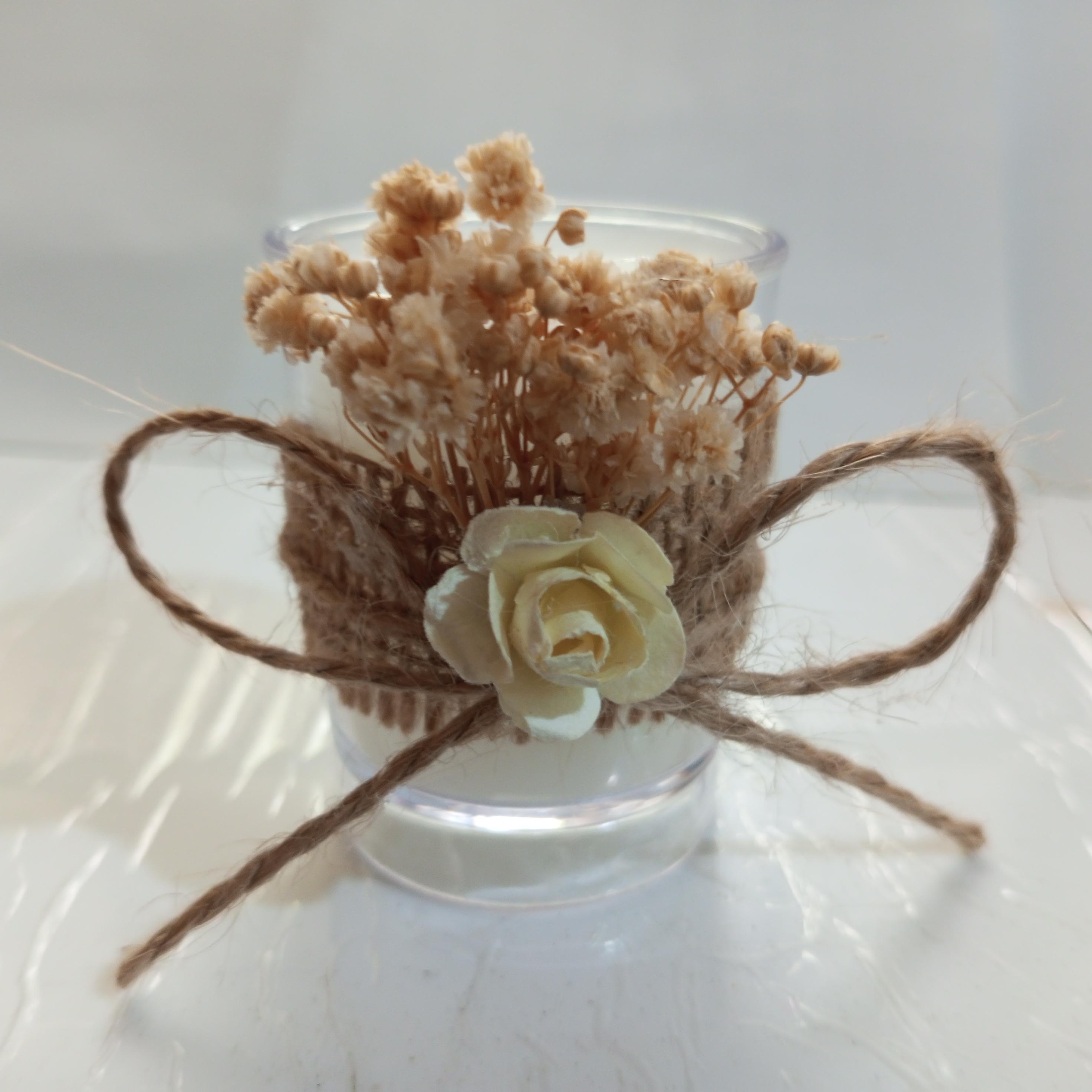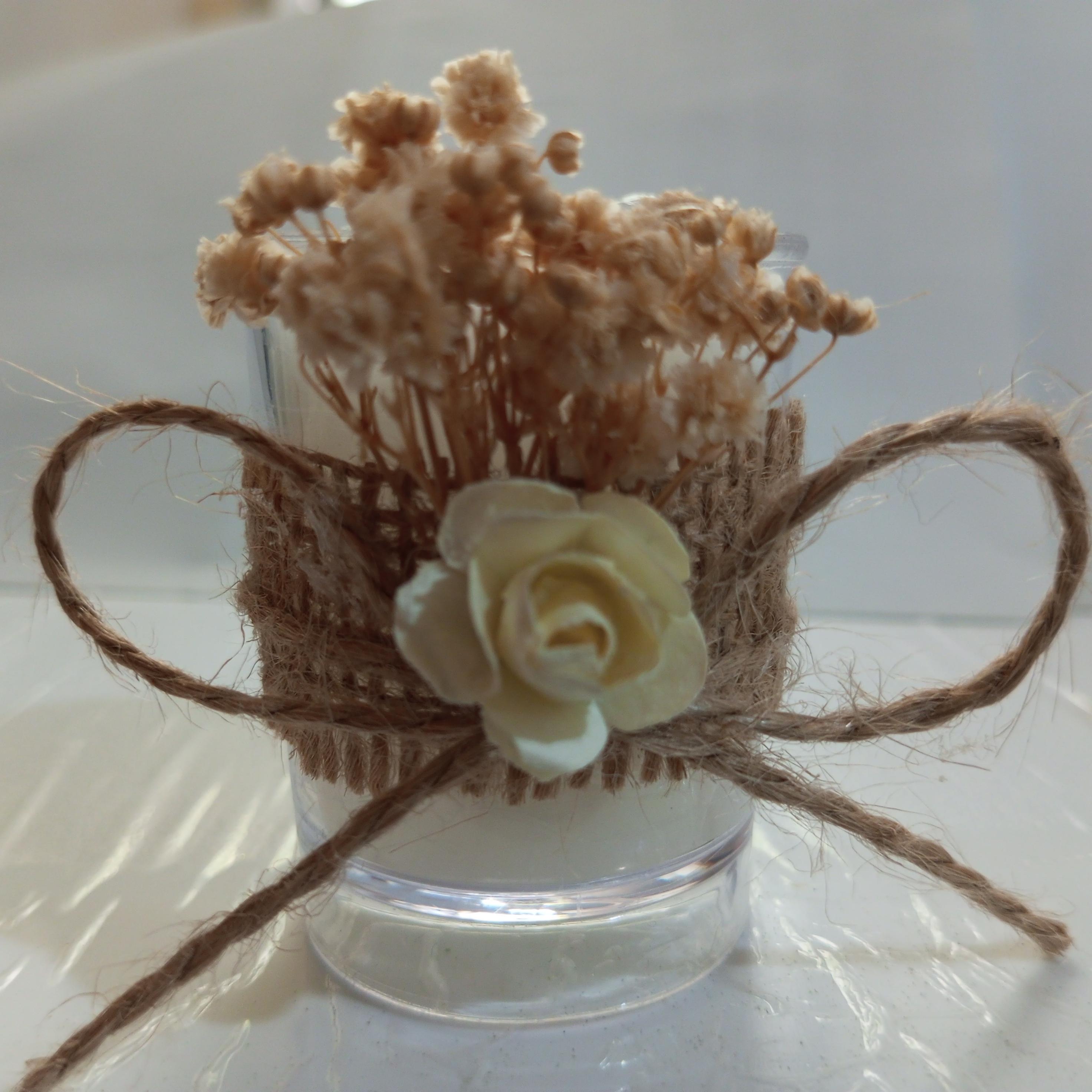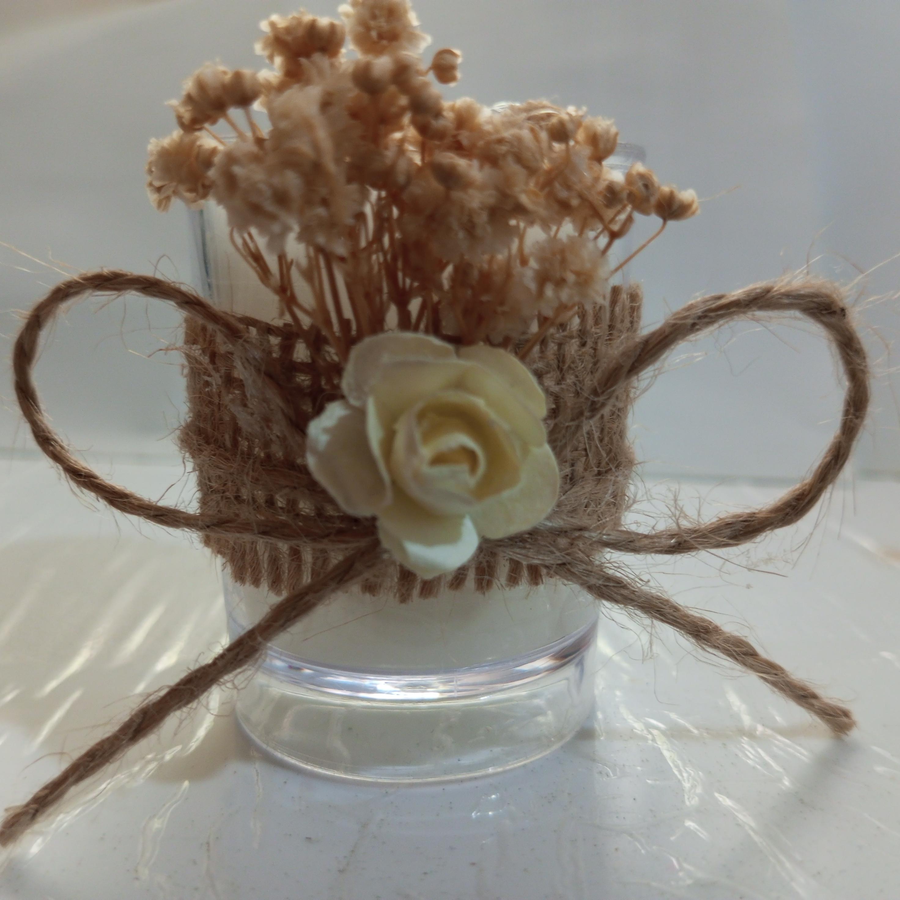Ürün süslemesinde jüt bez, cipso çiçeği ve krem rengi yapay gül kullanılmıştır. Ürünlerimizde isim etiketi bulunmaktadır. Sipariş verildikten sonra isim kartı bilgilerini iletiniz. Ürünümüz Sunuma hazır olarak gönderilmektedir.